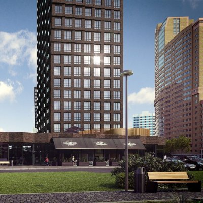 На первых этажах комплекса расположатся бутики, аптеки,магазины, кафе и многое другое. Также будет открыт ресторан с летней террасой, в котором можно будет начинать свое утро с вкусного завтрака и завершать свой вечер ужином, также будет доступна возможность заказать еду до квартиры.