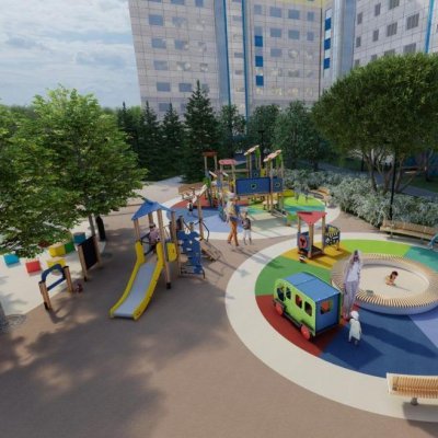 Подбор детского и спортивного оборудования. В данном комплексе НЕ используется стандартный набор песочница, горка, качели. Очень много интересного игрового оборудования/(снаряжения). Для малышей – это огромная индивидуальная песочница, куда можно прийти всем детям. Для мамочек предусмотрены скамейки как со стороны тени, так и со стороны солнца. Также для детей предусмотрены мелованная доска, качели-гнезда, детские полосы препятствий, мобильные кубы и деревянный амфитеатр. Важный момент, что площадь деревянного амфитеатра может быть задействована жильцами для собраний и различного рода мероприятий. То есть это и свободная площадка для детей, и для использования площадки тсж, когда это будет необходимо.