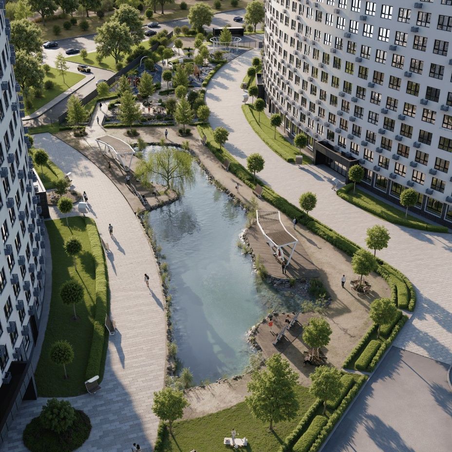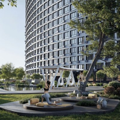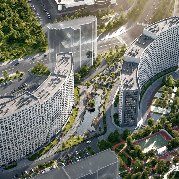 ЖК «Аквилон RIVA» — это спокойный и продуманный комфорт-класс у метро «Девяткино», где архитектура и инфраструктура работают на комфорт жильцов. Два радиальных корпуса, изогнутые по дуге, создают уютный, защищённый двор — без «окно в окно», с видами на озеро и большими окнами 1,8×2,3 м.