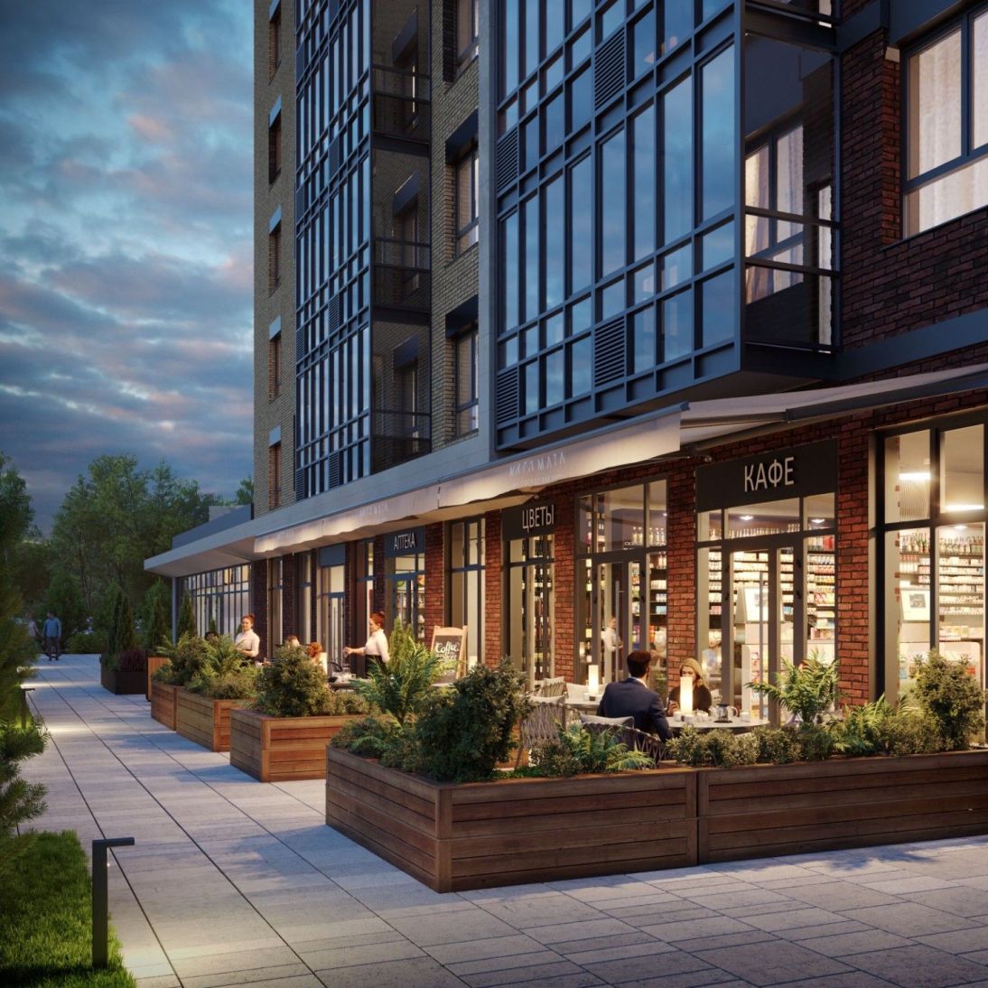 - Зеленые прогулочные аллеи — обилие зелени, ухоженные газоны и цветочные клумбы создают атмосферу природного уюта прямо под окнами.