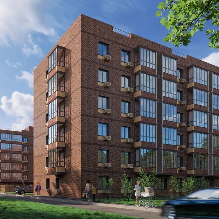 В жилом комплексе будут два дома на 178 квартир. Каждый высотой в шесть этажей, плюс цокольный этаж, где расположатся кладовые, общедомовая станция по очистке воды до уровня питьевой и большой спортивный зал.