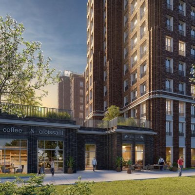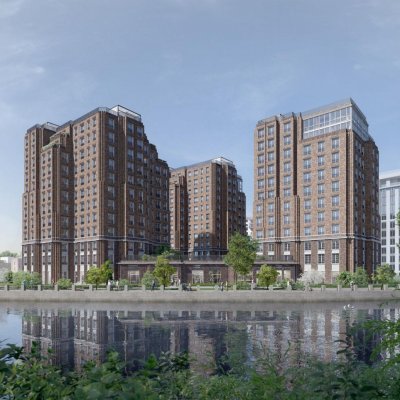 Облик жилого комплекса выполнен в стилистике американского ар-деко. Для отделки фасадов выбран декоративный клинкерный кирпич благородного тёмного оттенка, который контрастирует со светлым бетоном соседних зданий. Панорамные окна В квартирах устанавливаются алюминиевые панорамные окна высотой 2,3 метра. На последних этажах предусмотрено сплошное витражное остекление.