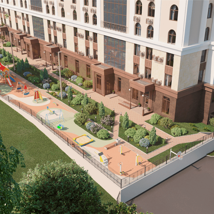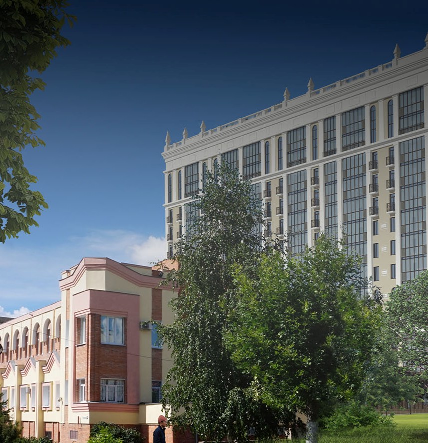 ЖК «Ампир» – это современный 14-ти этажный дом со строгой и изящной архитектурой. Здание включает: 12 жилых этажей, 168 квартир, подземный паркинг и коммерческие площади. Независимое отопление и водоснабжение обеспечивает автономная котельная. Двор «Ампира» – зелёная и безопасная территория с видеонаблюдением. Есть место для отдыха и тренажеры для занятий спортом. Есть развлекательные зоны для самых маленьких детей и тех, кто постарше. У каждого владельца квартиры есть возможность припарковать свой автомобиль на территории комплекса, а у коммерческих помещений – отдельный паркинг. Вас не будет беспокоить выгрузка стройматериалов, мебели и техники – всё это можно сделать через подземный паркинг. Кроме того, в паркинге мы предусмотрели зарядные устройства для электромобилей.