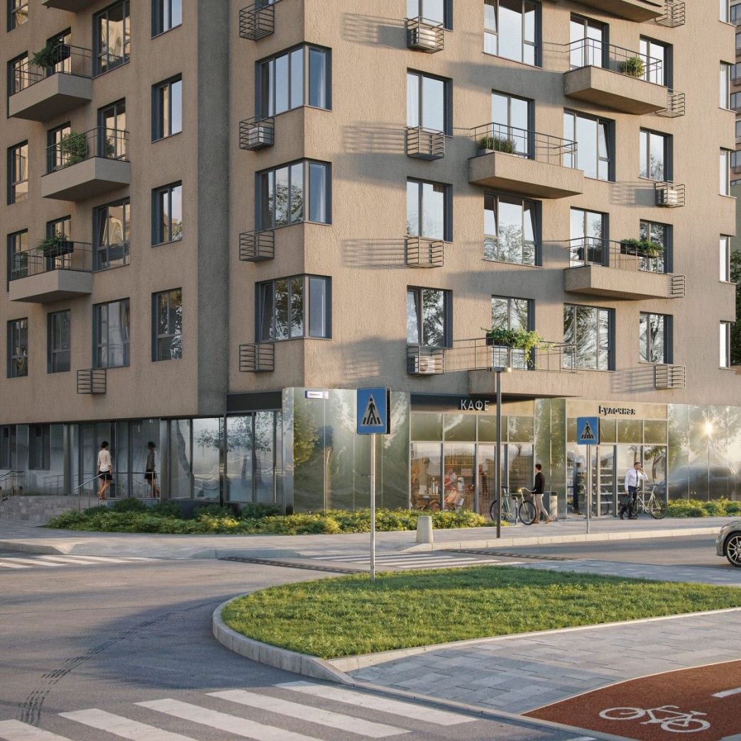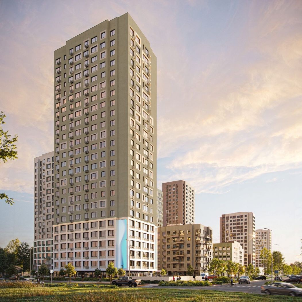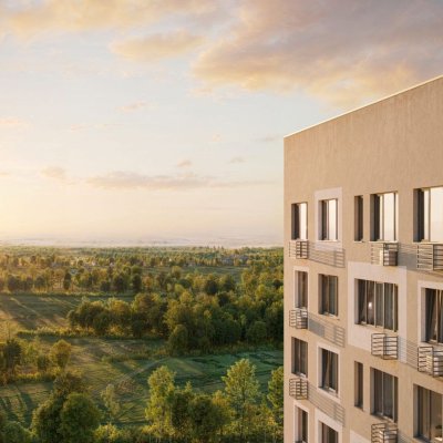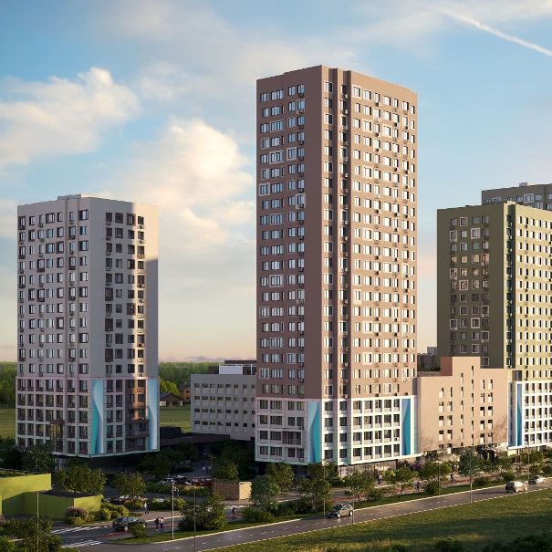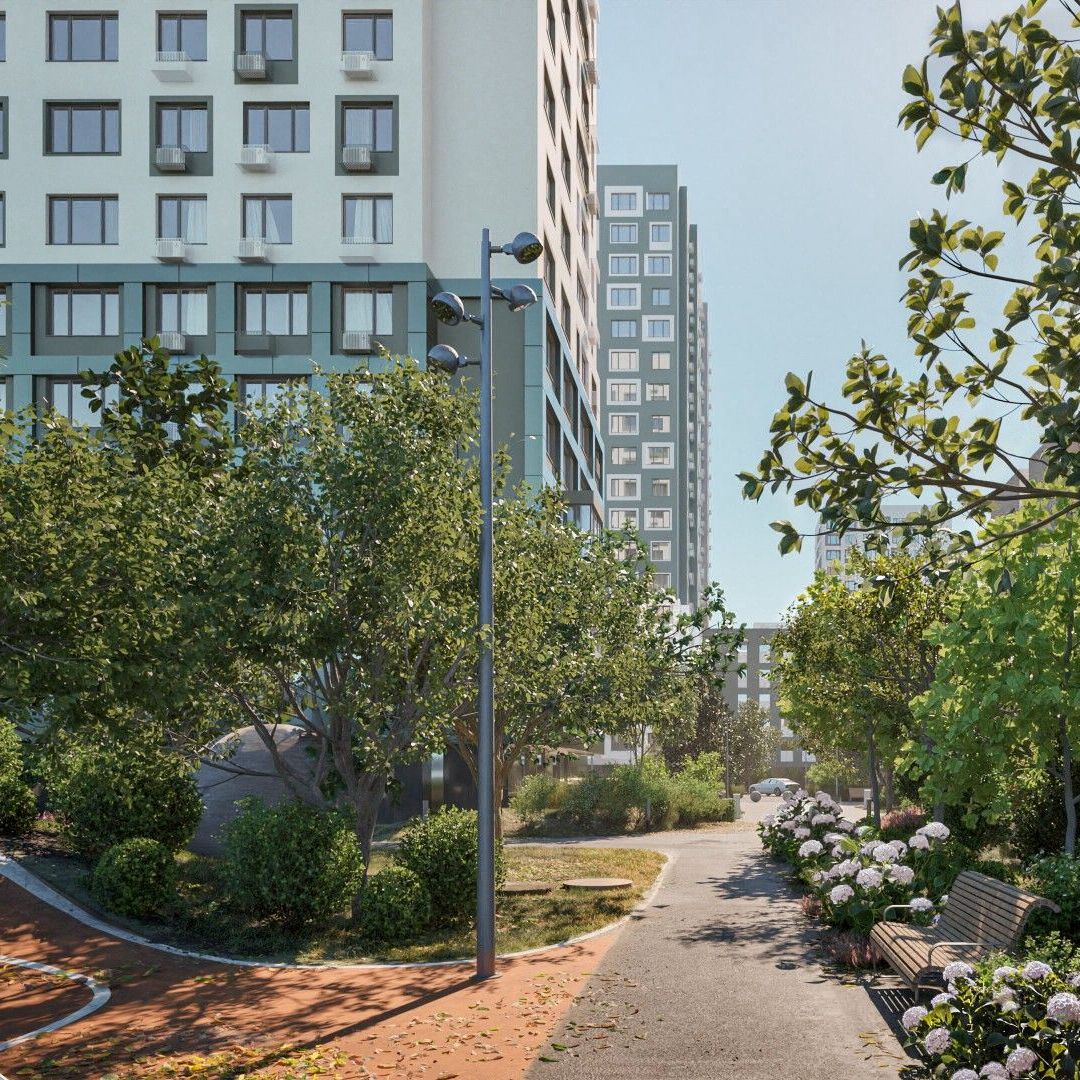 В первой очереди — шесть секций от 7 до 25 этажей. Переменная этажность формирует динамичный силуэт, а фасады в оттенках зелёной фисташки, бежевого вельвета и белого марципана мягко вписываются в лесное окружение. Приватный двор: дети катятся с горок в плейхабах, взрослые — тренируются в воркаут-зонах. Тёплые тамбуры, лаундж с мягкой мебелью, помещения для колясок, гостевые санузлы и зоны для велосипедов и самокатов с зарядками.
