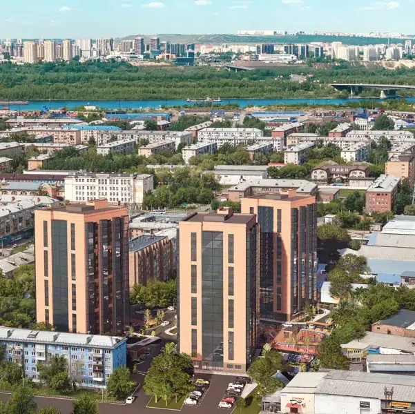 ЖК «Биография» — это три 18-этажных дома из чистого кирпича, так называемые «дома ручной работы». Из окон будущих жителей откроются виды на Енисей, склоны Левого берега и Октябрьский мост.