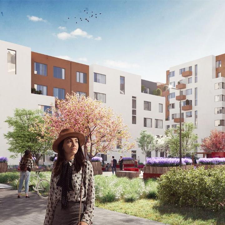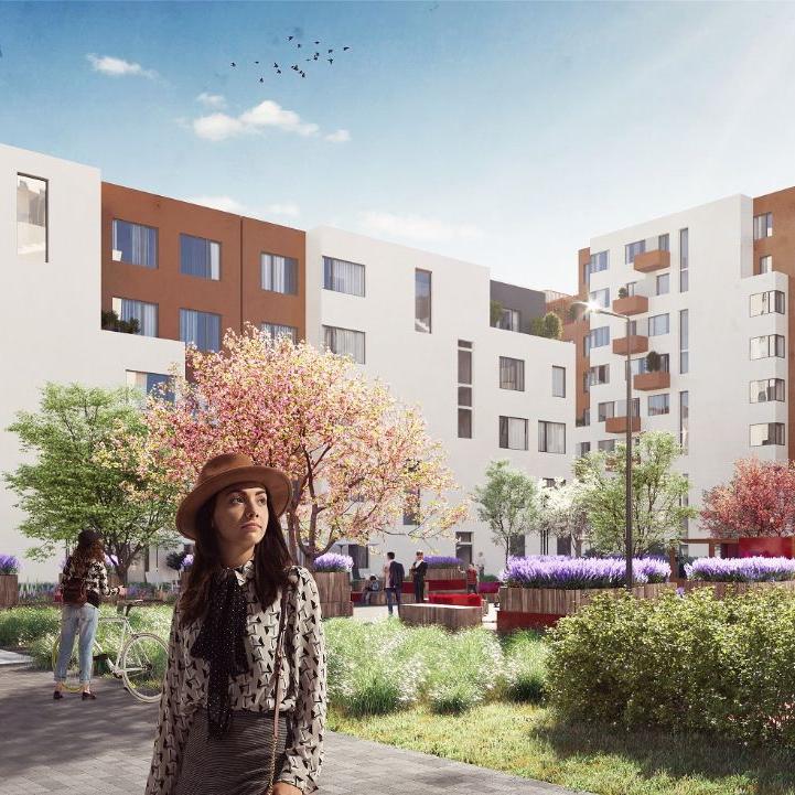 На внутренней территории безбарьерная среда для инвалидов, мам с колясками и велосипедистов. Используется зонирование для игр детей дошкольного и младшего школьного возраста, для отдыха взрослого населения и занятий физкультурой. Выделены зелёные зоны со скамьями и урнами. Полноценные зоны workout, площадки для игр в баскетбол и настольный теннис Зоны социального взаимодействия Детский сад на 260 мест Школа на 1500 учащихся Собственный стрит-ритейл. Паркинг. Открытые автостоянкина 106 машиномест + строительство паркинга на 2500 машиномест. Месторасположение. Жилой квартал возводится в Симферополе в востребованном районе. В пешей доступности улица Киевская с активным транспортным сообщением. Инфраструктура. 7 детских садов в радиусе км, Академическая гимназия, крупный ТРЦ и гипермаркет «АШАН», фермерский рынок, поликлиники и аптеки. По периметру комплекса несколько крупных парковок.
