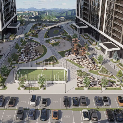 Новый жилой комплекс «Днепровский» во Владивостоке представляет собой 25-этажный многоквартирный дом на 991 квартиру. Комплекс включает гостевую автостоянку, спортивные и детские площадки, а также зоны отдыха. Участок имеет прямоугольную форму и расположен на сложном рельефе западного склона сопки, спускающейся к морю. Естественный рельеф был изменен планировочными работами, создавая террасную планировку. Абсолютные отметки варьируются от 182,3 до 156,42, с уклоном с юга на север. Участок находится в зоне развитой транспортной инфраструктуры, рядом с автомобильной дорогой, с заездом с ул. Днепровская. Комплекс состоит из четырех башен, выполненных в современном архитектурном стиле. Холлы оформлены в цветах горького, молочного и белого шоколада. Изящный ландшафтный дизайн дополняет смотровая площадка с видами на море, зеленую сопку и город. Треть территории отведена под озеленение. Двор-парк включает спортивное поле и тренажеры. На территории ЖК также предусмотрены: собственный детский сад, детские площадки, детская комната для праздников и игр в любую погоду, колясочные, безопасный вход без ступеней, а также площадка для дрессировки и выгула собак.