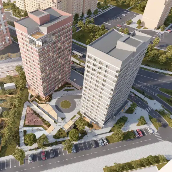 Подземный паркинг с возможностью спуститься на лифте По 6 квартир на площадке 15 и 16 этажи - повышенной комфортности: двухуровневые квартиры, квартиры с террасами Стильные вестибюли с зоной ожидания в каждой секции По два больших лифта в каждом секции Теплая колясочная на 1 этаже Велопарковка в паркинге Недвижимость на первой линии: комфорт с магазинами, кафе, ресторанами и бьюти пространствами. Приватный двор без машин. Наземная парковка отделена от дворового пространства.