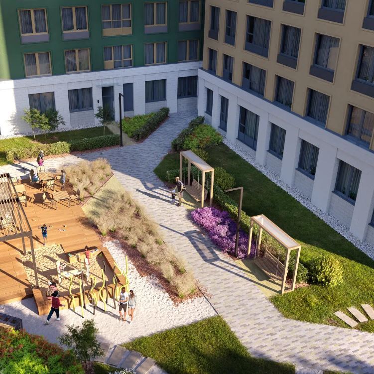 Вокруг дома — сложившаяся инфраструктура. Здесь приятно выйти на утреннюю пробежку и просто прогуляться, купить продукты в ближайшем супермаркете и проводить ребенка в школу. Это место прекрасно подходит для семейной жизни. \ На территории предусмотрено несколько функциональных зон, где каждый найдет себе занятие по вкусу: для самых маленьких — большая песочница и навес, под которым можно спрятаться от солнца; для ребят постарше — любимые во все времена игры, разметка для которых уже нанесена на асфальт: классики, змейки. Подростки с удовольствием поиграют в настольный футбол, а взрослые отдохнут на шезлонгах вдали от дворовой суеты. На территории предусмотрено несколько функциональных зон, где каждый найдет себе занятие по вкусу: для самых маленьких — большая песочница и навес, под которым можно спрятаться от солнца; для ребят постарше — любимые во все времена игры, разметка для которых уже нанесена на асфальт: классики, змейки. Подростки с удовольствием поиграют в настольный футбол, а взрослые отдохнут на шезлонгах вдали от дворовой суеты. Попасть на крышу можно прямо на лифте.