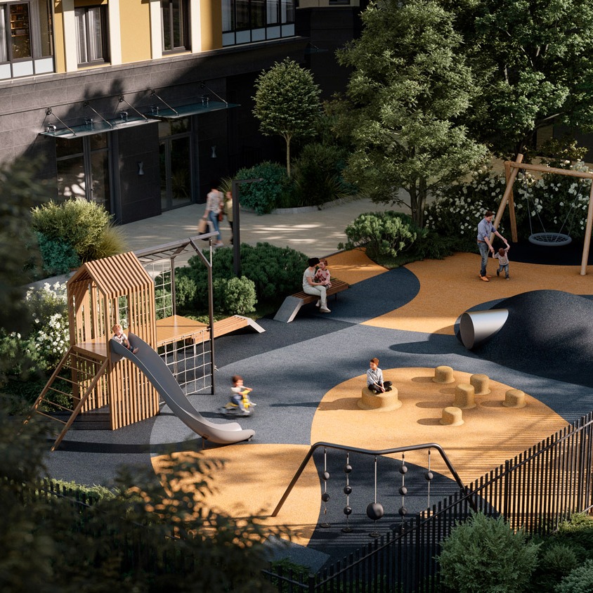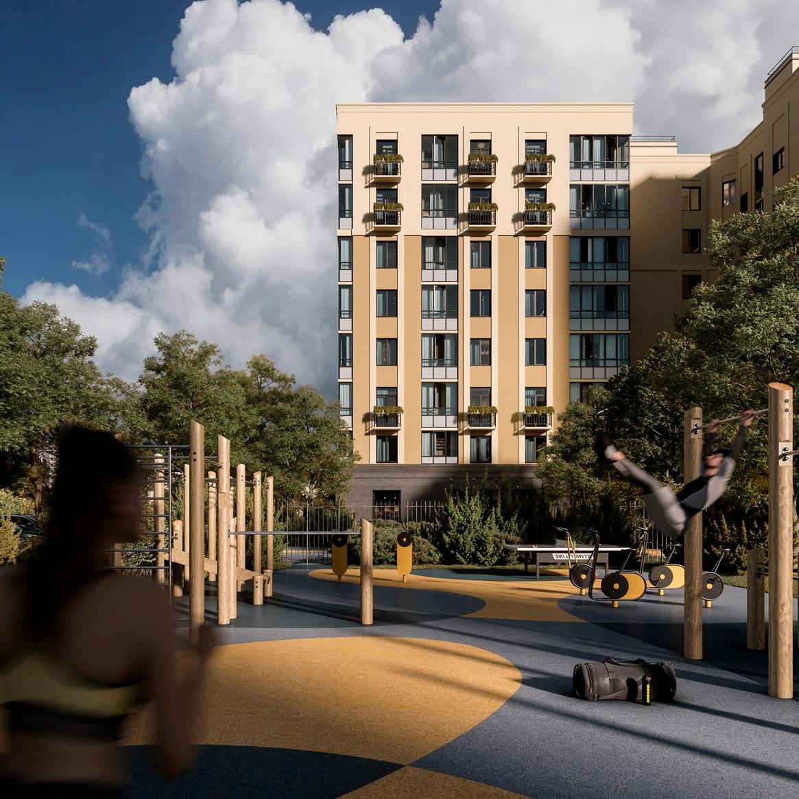 На первом этаже расположены колясочные, а на цокольном — кладовые помещения с доступом на лифте. Охраняемая закрытая территория комплекса благоустроена: выполнено ландшафтное озеленение, спроектированы зоны отдыха, детская и спортивная площадка. Для владельцев автомобилей предусмотрена парковка.Жилой комплекс расположен в районе с развитой инфраструктурой. В шаговой доступности находятся детский сад, школа, поликлиника, спа-салон, ресторан, пекарня, барбершоп, зоомагазин, цветочная лавка, спортивная студия, большое количество спортивных открытых площадок, благоустроенные велосипедные дорожки и несколько конных клубов. В 1,5 км находится въезд на КАД, а в 4 км — природный парк «Колтушские высоты», на территории которого разработаны 3 эко-маршрута с различными уровнями сложности. До метро «Проспект Большевиков» можно добраться за 20 минут на автомобиле.