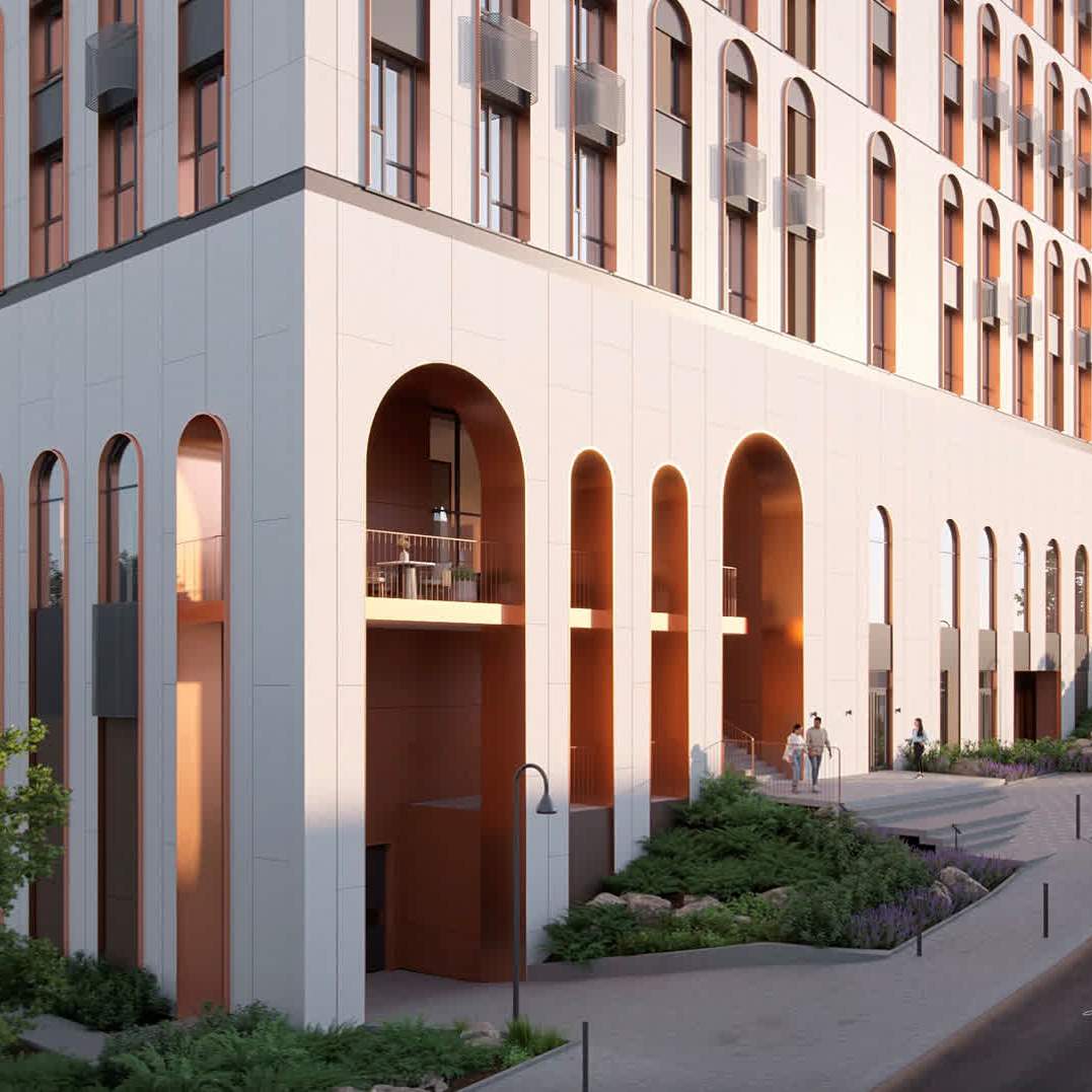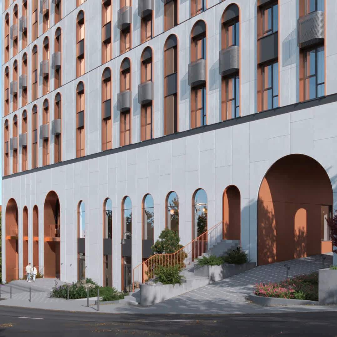 Двор — закрытый, без машин, с плиткой, которая не скользит, и зеленью — более 30% территории. Здесь дышится легче, играют дети, отдыхают взрослые. Школы, кружки, бассейн, поликлиники, магазины — всё рядом. На первых этажах — живые бизнесы: кофе, аптека, салон, всё, что нужно по пути домой. Для питомцев — лапомойки в паркинге. Для мусора — заглублённые контейнеры, чтобы двор оставался чистым. В холлах — места для колясок, в подъездах — скоростные лифты. Вход на уровне земли — удобно всем.