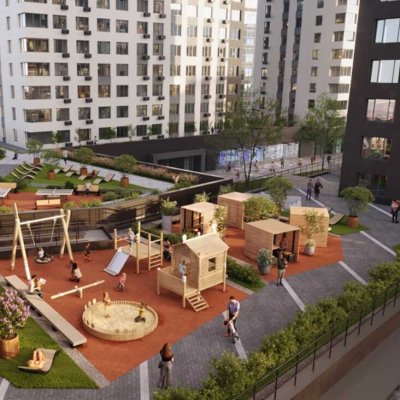3 игровыми площадками, SPA-центром, фитнес-клубом; коммерческими объектами (ресторанами, магазинами) на 1 этажах зданий.