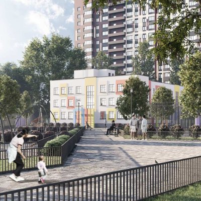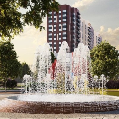 «Флора» — это жилая экосистема. Вместе с жильём на территории 30 гектаров создана необходимая социальная, транспортная и коммерческая инфраструктура. Есть школа, детсады, двор-парк и фонтан.