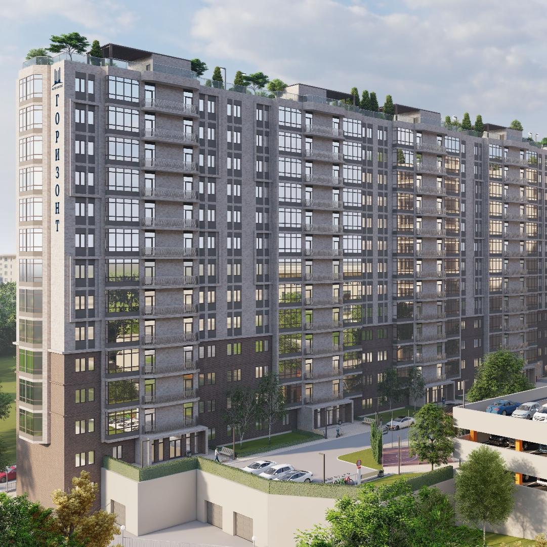 Жилой комплекс "Горизонт" - масштабный проект, который воплощает концепцию «город в городе» и представляет собой пять секций разновысотных восьмиподъездных корпусов, расположенных фасадами под углом друг к другу, что одновременно создает ощущение изящности и легкости сооружений и дает комплексу дополнительное преимущество защиты придомовой территории от ветра. Общая площадь комплекса, состоящего из 327 квартир, составляет 30 033, 66 м².