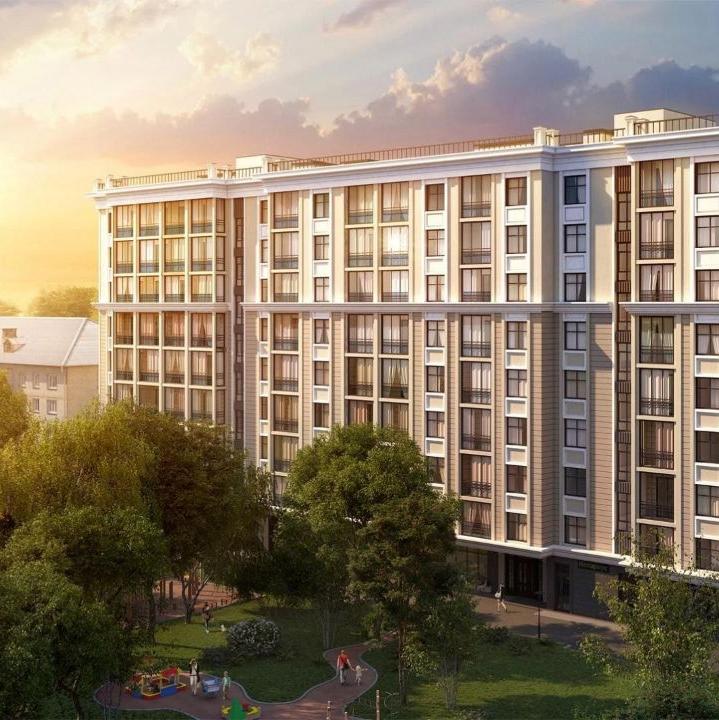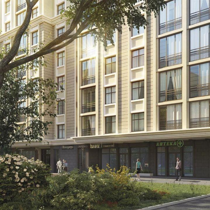Фасад зданий. Фасады утепленные. Отделка фасада 1 этажа выполнена из керамогранитных плит на металлической подсистеме, отделка фасадов выше 1 этажа выполнена тонкослойной фасадной штукатуркой. Перекрытия и перегородки. Межквартирные стены выполнены из железобетона и имеют толщину 160 мм. Межкомнатные перегородки выполнены из гипсовых пазогребневых блоков, толщиной 80 мм. В отдельных местах перегородки между комнатами, выполнены из железобетона и имеют толщину 160 мм. Лифты. Немецкой фирмы «STEIMBERG», грузоподъемностью 1000 кг. Дизайнерская отделка кабин лифтов. Окна. Металлопластиковый профиль с двухкамерным стеклопакетом. Высота оконных проемов в жилых квартирах 1800 мм, ширина 1300/1400/1700 мм. Остекление балконов и лоджий. Система витражного остекления. Балконы и лоджии со второго этажа. На каждом балконе предусмотрена одна поворотная створка. На балконах и лоджиях устанавливается электрическая розетка и предусматривается освещение. Отопление. Отопление жилой части здания - двухтрубная коллекторная система с вертикальными стояками в санитарно-технических шахтах и нижней разводкой магистралей по паркингу. На каждом этаже в межквартирных коридорах санитарно-технических шахтах предусмотрена установка поэтажных коллекторов. От поэтажных коллекторов до квартир предусматривается прокладка трубопроводов из сшитого полиэтилена в изоляции. Предусматривается двухтрубная периметральная разводка к отопи­тельным приборам в квартирах. Разводка к приборам предусматрива­ется из сшитого полиэтилена в защитном кожухе в конструкции пола. Отопительные приборы для жилой части предусматриваются стальные панельные радиаторы со встроенными термостатическими вентилями, с нижним подключением. Учет тепловой энергии по квартирам предусмотрен. Отопительные приборы для технических помещений и в лестнично­лифтовых узлах предусматриваются стальные панельные радиаторы с боковым подключением. Радиаторы комплектуются термостатами, за исключением лестнично­лифтовых узлов и технических помещений. Водоснабжение. В здании предусматриваются раздельные системы водоснабжения жилых и встроенных помещений. Для встроенных помещений предназначены индивидуальные узлы учета воды. Система водоснабжения жилой части дома предусматривается однозонной. Водоразборные стояки прокладываются в пределах санузлов квартир. В случае отдельно размещаемых кухни и санузла, стояки в каждом помещении. На ответвлении от водоразборного стояка в каждой квартире предусматривается установка запорной, измерительной арматуры (водосчетчики), квартирный пожарный кран и регулятор давления (при избыточном давлении). Установка сантехнических и разводка к ним приборов в квартирах и во встроенных помещениях не предусмотрена. Трубопроводы системы ХВС предусмотрены: магистральные трубопроводы из оцинкованных стальных труб; стояки из полипропиленовых армированных стекловолокном труб. Трубопроводы системы ГВС предусмотрены: магистральные трубопроводы из нержавейки; стояки из полипропиленовых армированных стекловолокном труб. Вентиляция. В жилой части здания для обеспечения установленных санитарными и технологическими нормами условий чистоты воздуха предусматривается вентиляция с естественным побуждением. В жилые помещения и кухни обеспечивается естественны
