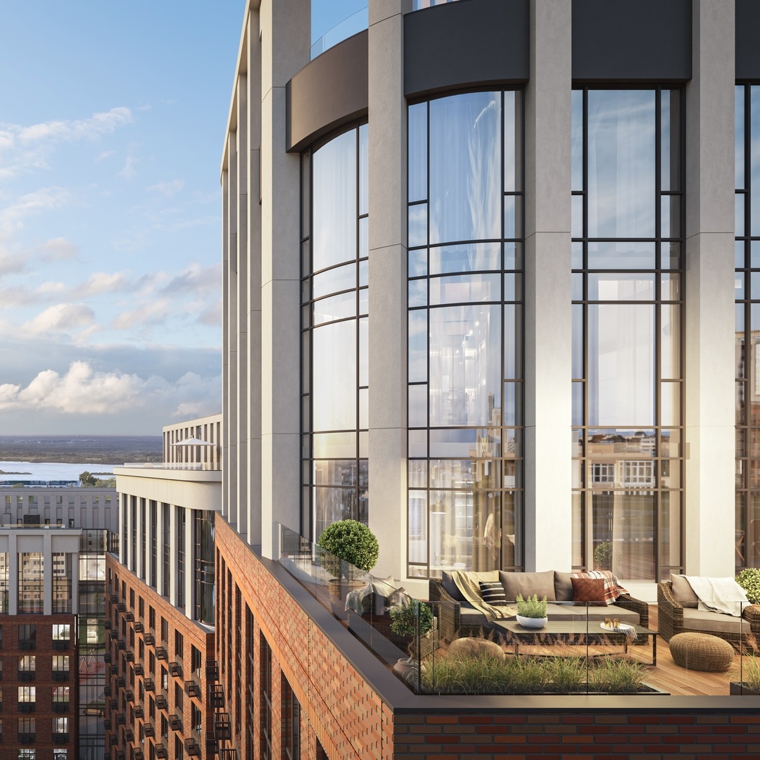 Застройщик предлагает на выбор 182 квартиры: от квартир-студий до 5-комнатных пространств. В двенадцати квартирах расположатся индивидуальные террасы, где можно проводить время с семьей и друзьями, и общая терраса в свободном доступе для всех жителей на самой высокой сессии. Также есть квартиры с угловым остеклением — для любителей созерцать, квартиры с высокими потолками и панорамными окнами — для жителей, готовых на смелые дизайнерские решения.