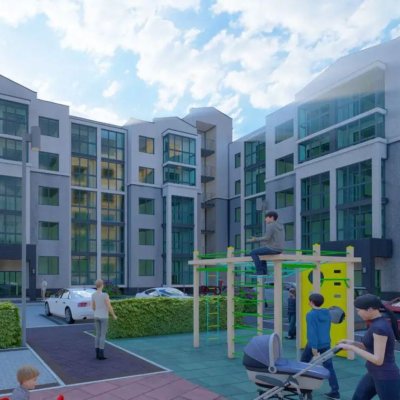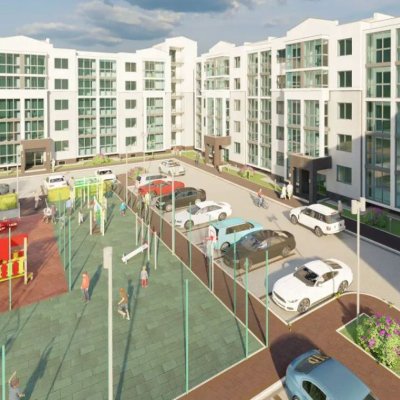Благоустройство прилегающей территории включает в себя детскую и спортивную площадку, места для отдыха и гостевой паркинг.