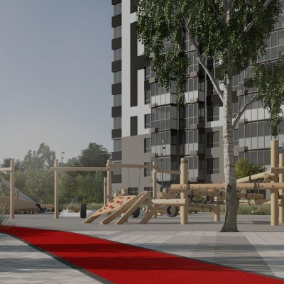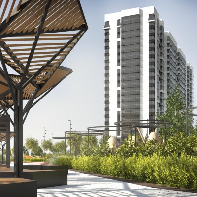 Для жителей высоток будут построены закрытие парковки, в том числе и подземные, дворовая же территория станет безопасным местом для семейного отдыха и занятий спортом. Грамотное зонирование пространства позволит выделить игровые локации, дорожки для прогулок, смотровые площадки с оригинальными лавочками-качелями и видом на озеро. Вся территория будет разделена на два яруса: верхний — в непосредственной близости от высоток, и нижний — возле водоема.