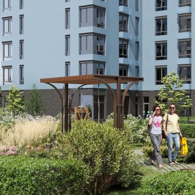 Дворы оснащаются спортивными площадками, велодорожками, прогулочными бульварами, зонами для работы и пикников, плейхабом и безопасным игровым пространством для детей. На территории реализуется концепция «закрытый двор без машин». Первые этажи домов займут коммерческие помещения.