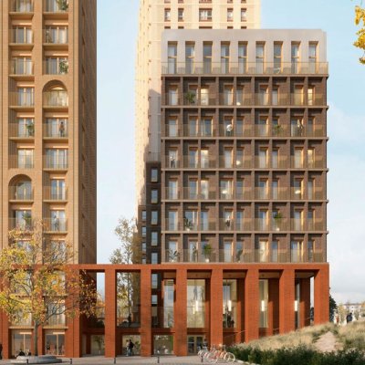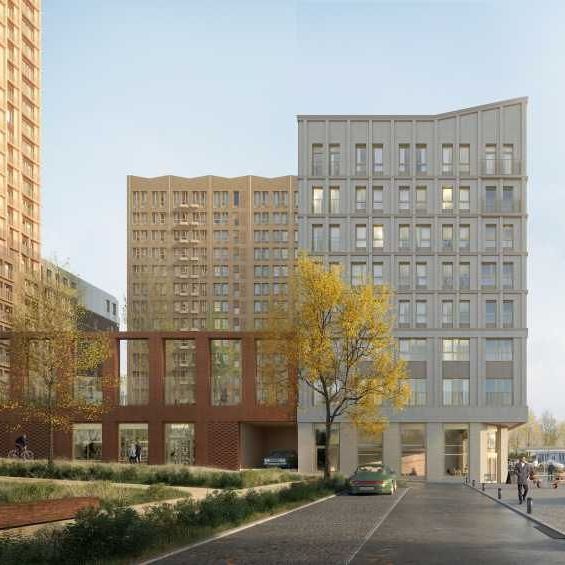 Внутренняя территория квартала — это закрытый двор повышенной безопасности. Он защищен от улицы колоннадой и домами квартала по периметру. Кроме того, мы подняли двор на несколько метров над уровнем земли, чтобы было безопасно, спокойно и тихо.