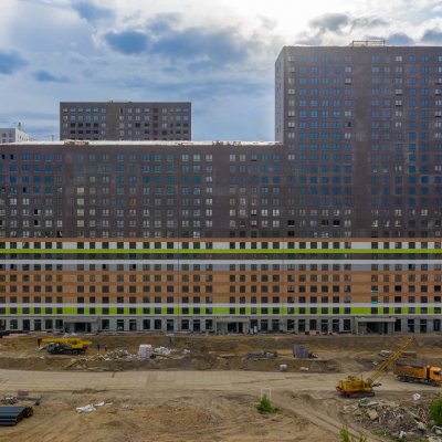 Тип домов панельный, фасады корпусов зданий облицованы современными качественными материалами: керамическая плитка, карнизы, ламинат. Высота зданий – 16-25 этажей. На первых этажах зданий предусмотрены помещения под кладовые для хранения колясок, велосипедов и других крупногабаритных предметов, а также под офисы и магазины. Подъезды будут расположены на уровне земли и с двумя входами: со двора и с улицы.
