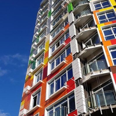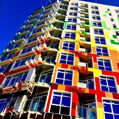 Жилой комплекс «Маэстро» – это 12-этажный монолитно-каркасный дом с яркими фасадами, панорамными окнами и французскими балконами. Наружные стены, выполненные из керамзитобетонных блоков, утеплены и облицованы пестрыми керамогранитными плитами навесных фасадов. Два первых этажа считаются цокольными: на нижнем уровне находятся магазин и коммерческое помещение свободного назначения, на верхнем – спортзал и паркинг на 18 машиномест. Первый наземный этаж отдан под четыре офисных помещения площадью от 32 до 85 кв. м. Остальные девять наземных этажей занимают 80 квартир: на втором их восемь, на третьем и выше – по девять на этаже. Площадь квартир варьируется от 31 до 56 кв. м, лучшие видовые квартиры, обращенные в сторону моря, – трапециевидные однокомнатные 35,4 и 39 кв. м. Квартиры сдаются с черновой отделкой. Предусмотрены центральные коммуникации и автономное отопление от котла на кухне. В подъезде установлен один грузопассажирский лифт и выполнен ремонт: оштукатурены стены, полы выложены плиткой. Территория вокруг дома будет закрытой и охраняемой, во дворе планируется озеленение и обустройство места для отдыха, детской и спортивной площадок.