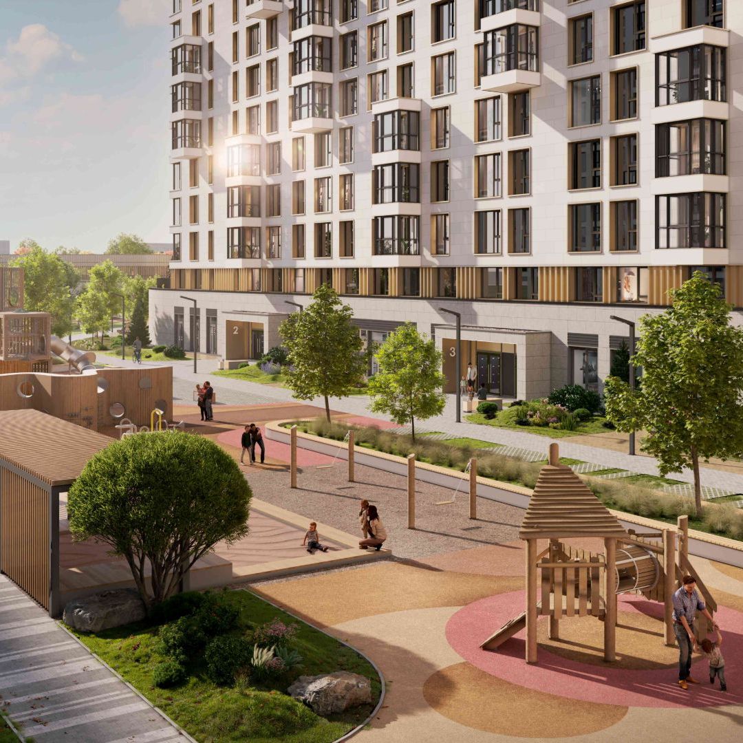 Дворы комплекса будут закрыты от машин и посторонних. Рядом проложат бульвар для пеших прогулок, разобьют сад со скульптурами и арт-объектами, посадят молодые деревья и декоративные кустарники. Здесь же организуют детские игровые зоны и спортивные площадки, проложат велодорожки и установят парковки для самокатов. В проекте запланирована постройка собственного образовательного центра, включающего школу и детский сад. На территории также расположатся индивидуальный тренажерный зал, соседский центр, поликлиника и торгово-развлекательный комплекс. На первых этажах корпусов откроются коммерческие помещения с продуктовыми лавками, салонами красоты, аптеками и другими полезными сервисами. Для автовладельцев будет доступен подземный паркинг, оснащенный кладовыми помещениями и зарядными станциями для электромобилей.