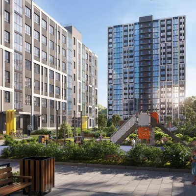 Архитектура комплекса решена в современном стиле: разновысотные секции, гармоничное цветовое решение, большая площадь остекления.