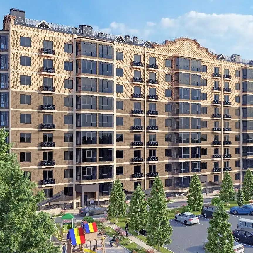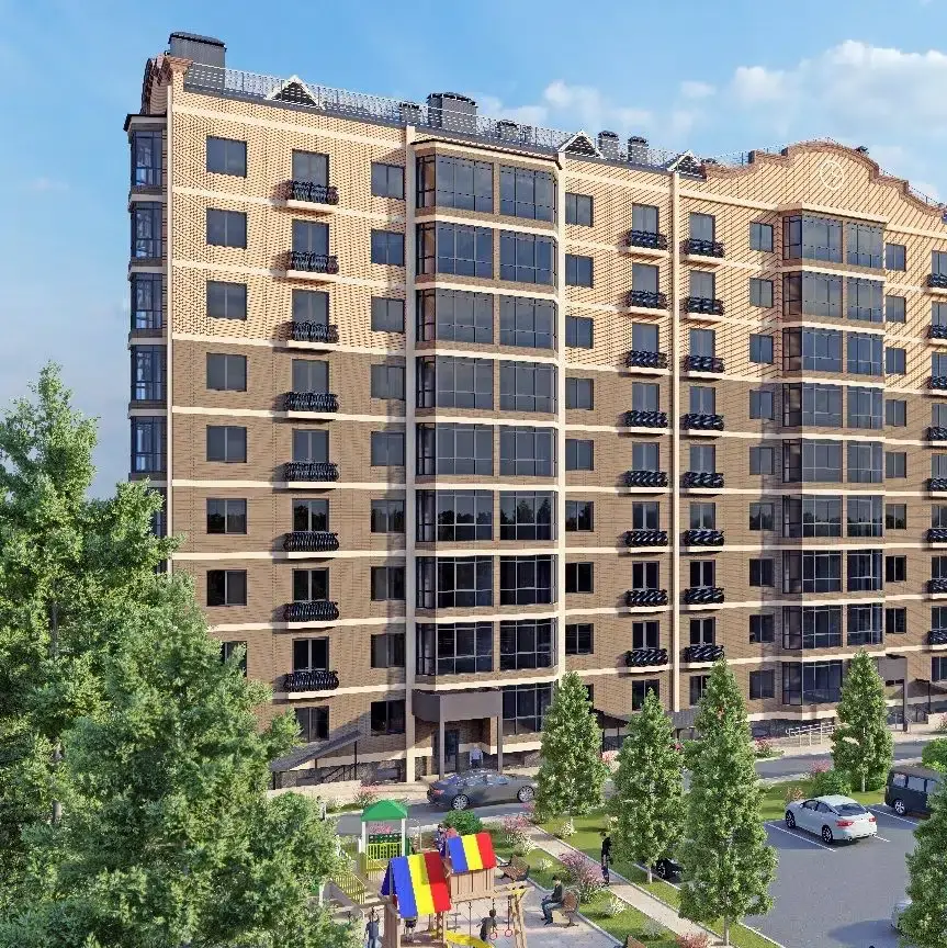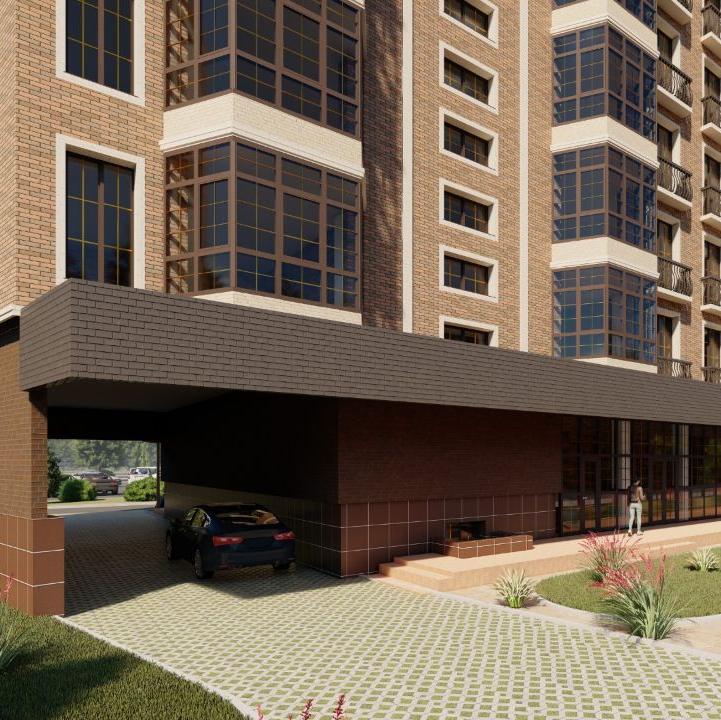 Многоквартирный девятиэтажный жилой комплекс представляет собой трапециевидный объем с выступающими в плане остекленными эркерами, что придает фасадам индивидуальность, четкость форм и ощущение завершенности данного объема. Жилой комплекс расположен в Центральной части района с развитой инфраструктурой.