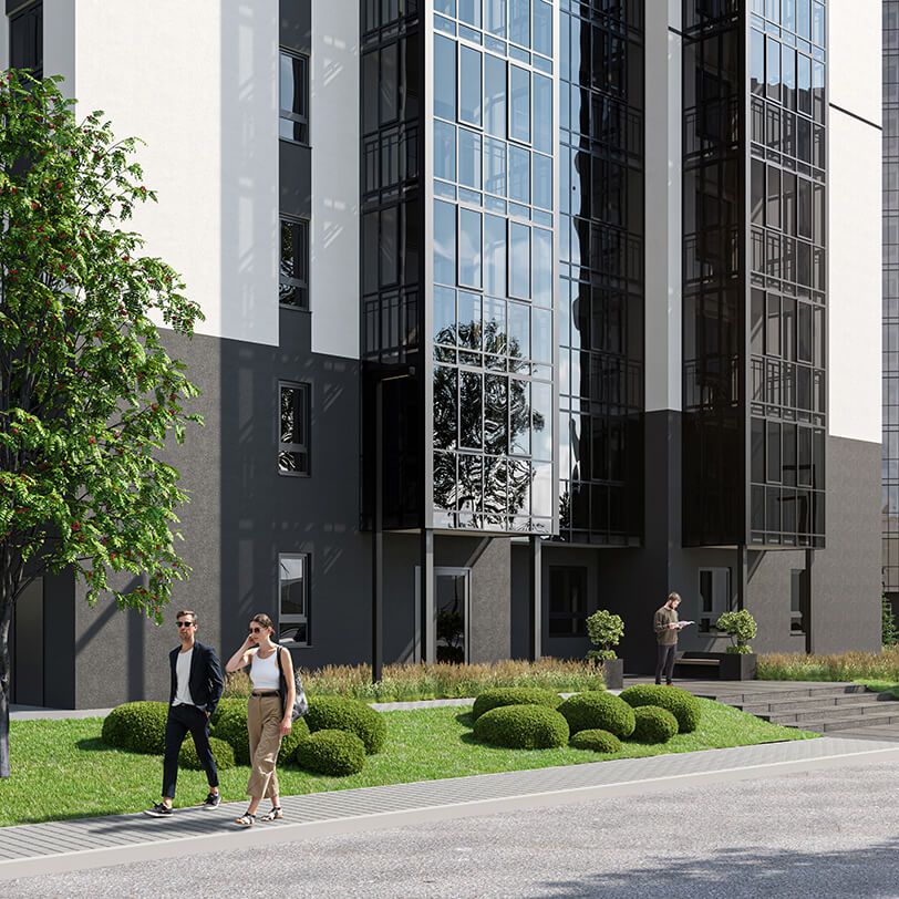 Территория объекта — целостный архитектурный ансамбль из семи домов. Рядом расположен сквер площадью 3,6 га. Зелёную территорию комплекса окружает зона общественно-делового назначения, дошкольные и образовательные учреждения, а также малоэтажные жилые дома.