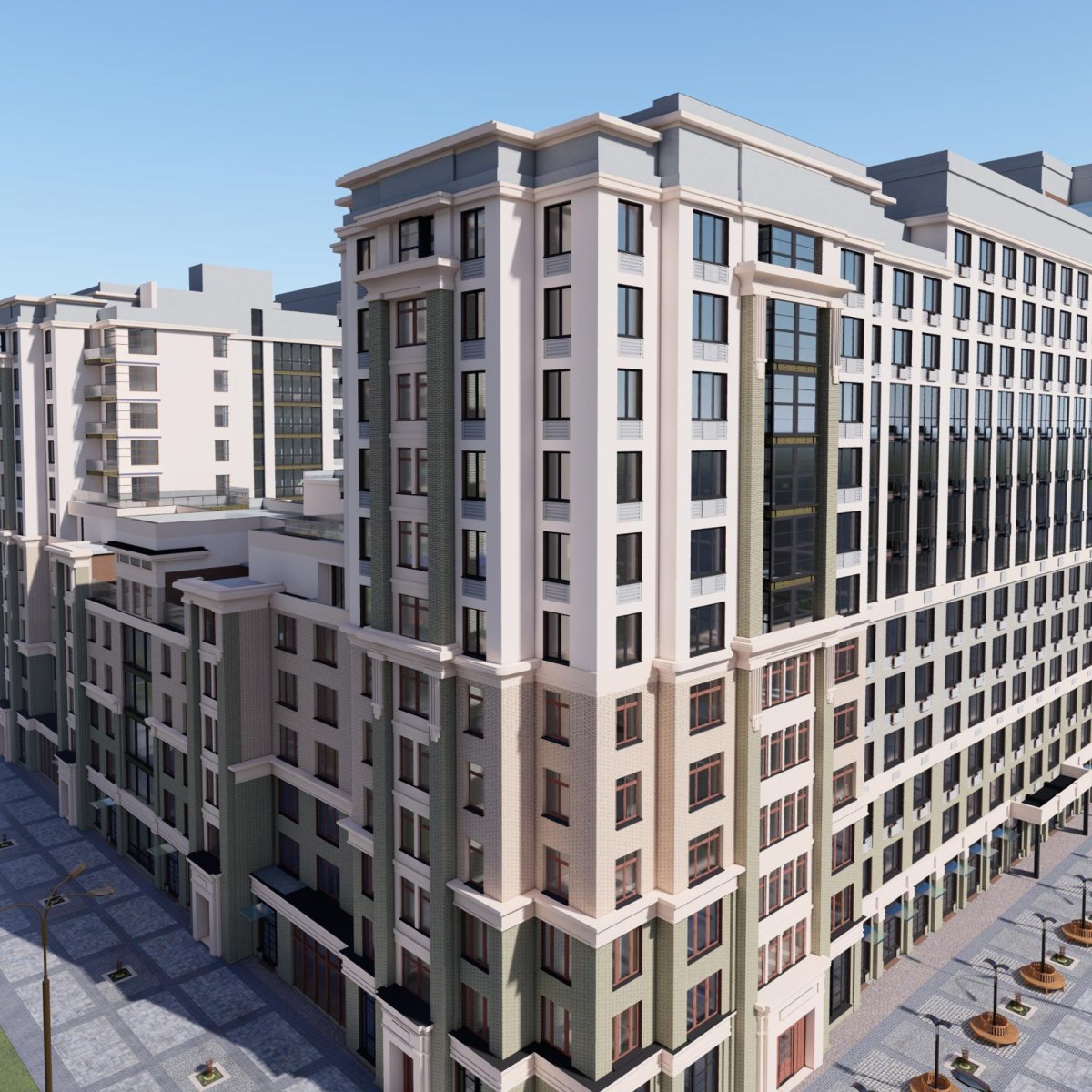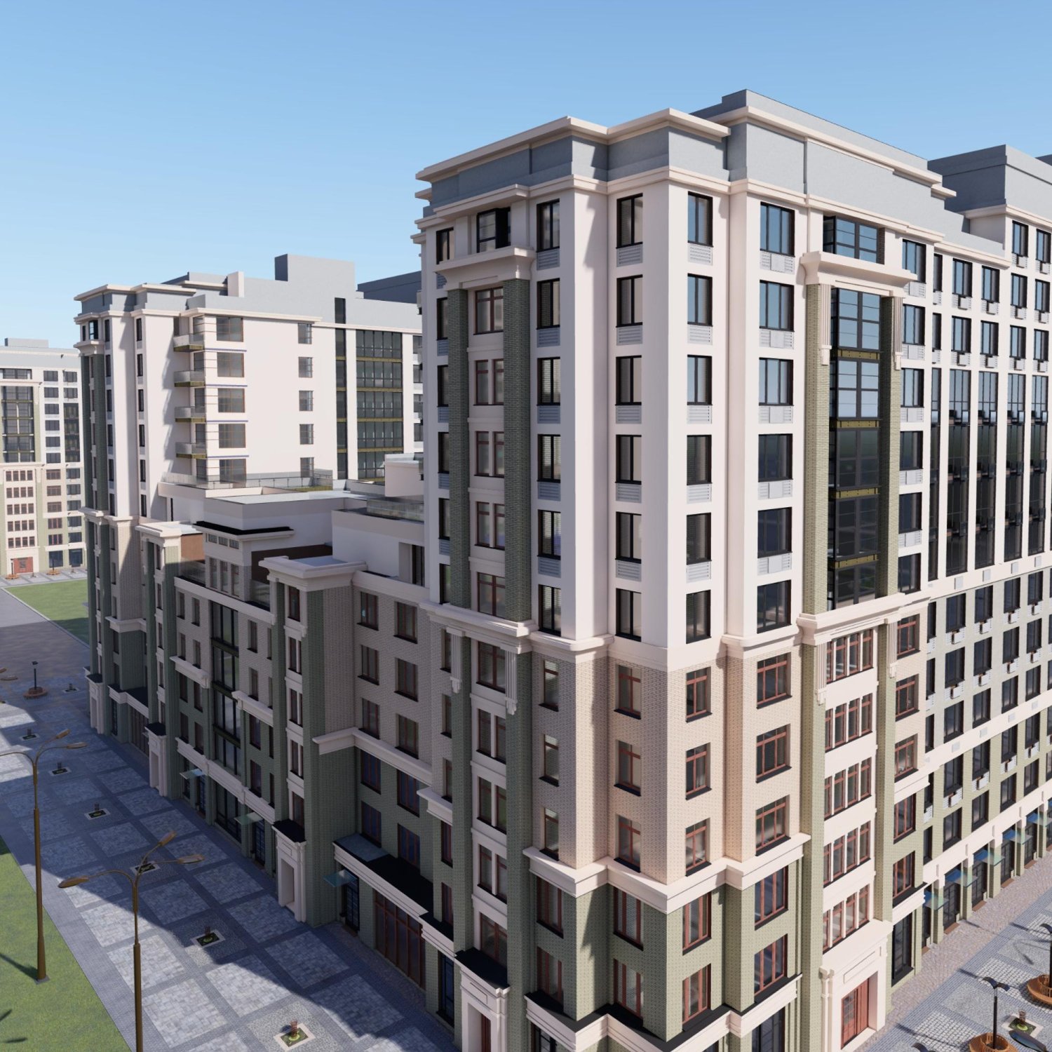 В проекте соблюдена безбарьерная среда, предчистовая отделка «Белый квадрат», а так же представлено изобилие просторных детских площадок, спортивных и прогулочных зон, предназначенных для разных возрастов.
