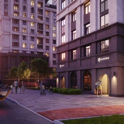 Секции домов образуют закрытые дворы, которые объединены арками. На детских площадках элементы игрового оборудования и благоустройства делаем из дерева или металла — эти материалы экологичнее пластика, надёжнее и долговечнее. Для деревянных элементов используем лиственницу — её древесина крепкая и устойчива к влаге. Во дворе комплекса «Парк Победы» двухуровневое освещение — высокие фонари и декоративная подсветка деревьев и кустов. По периметру организовано видеонаблюдение. Камеры установлены так, чтобы просматривался весь двор и входы в дом, поэтому на территории дома всегда безопасно.