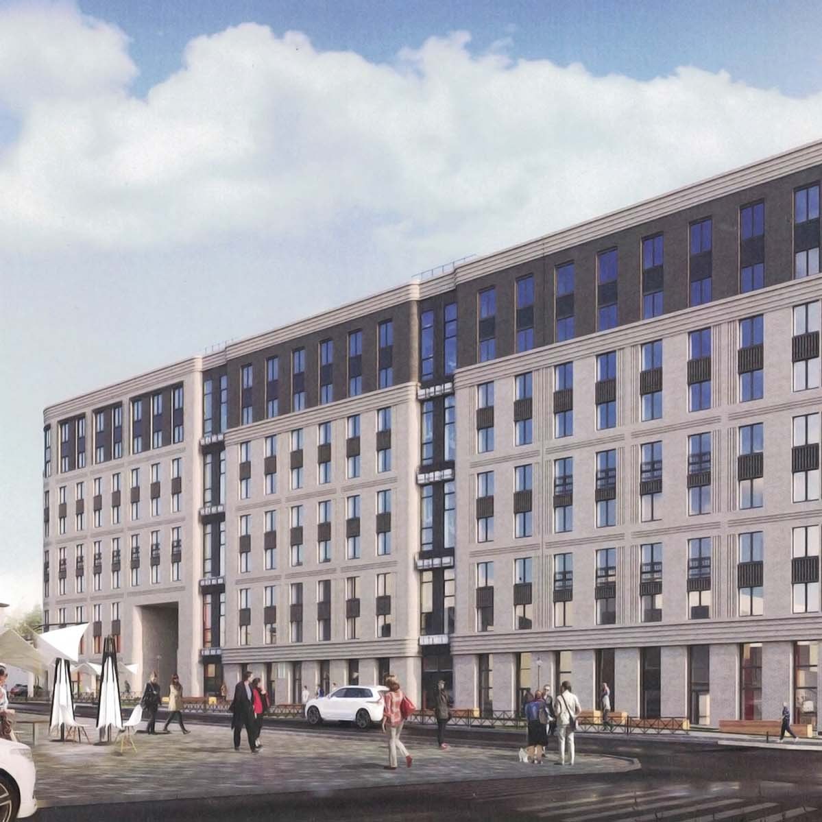 Первый дом на Красной» – дом для тех, кто чтит традиции, но смело смотрит в будущее. Для тех кто сам создает историю своей семьи.Дом возводится в историческом центре Ижевска, напротив бывшего здания театра имени Короленко. «Первый дом на Красной» имеет переменную этажность 9-10 этажей. Он продолжает архитектурную традицию исторического центра города и воплощает приемы неоклассицизма.