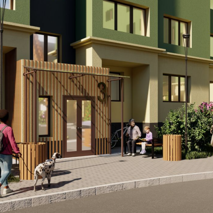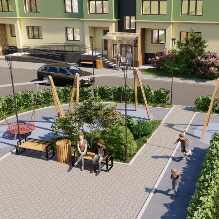 Во дворе комплекса посажены фруктовые деревья, которые радуют жителей своими плодами и цветами в разные времена года. Мы тщательно спланировали и организовали пространство двора, включив в него зоны для отдыха и занятий спортом. Здесь также предусмотрена площадка для уличных тренировок, оборудованная турниками, брусьями и скамейками для упражнений.