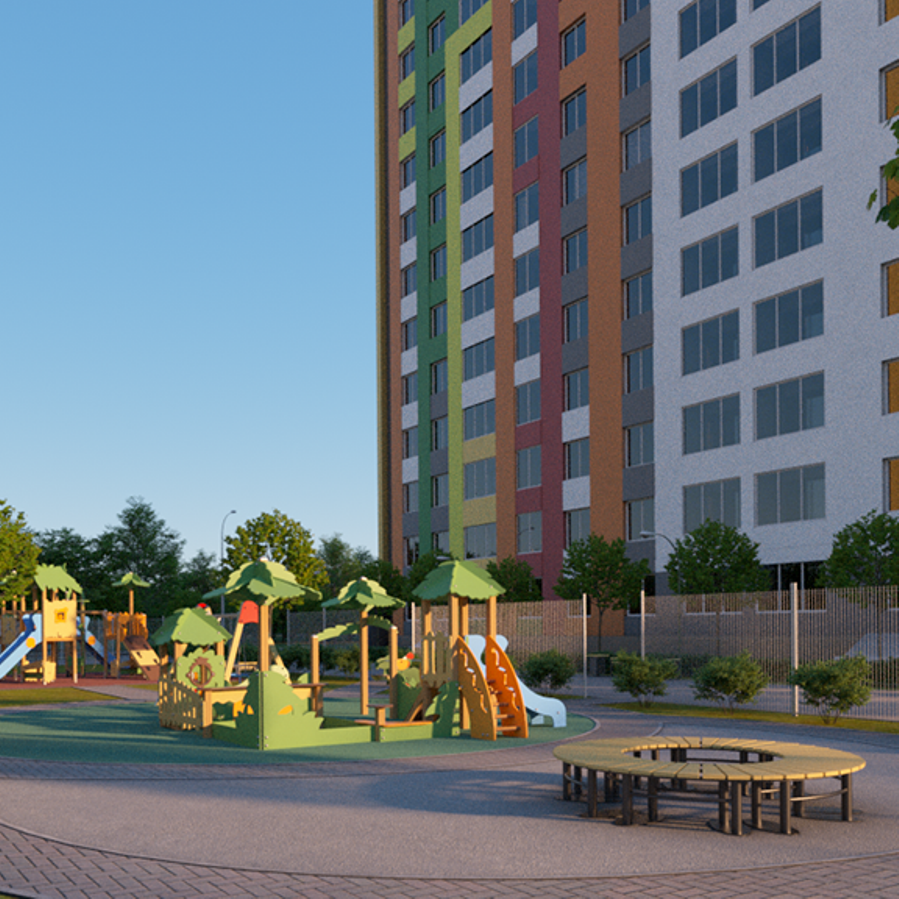 Двор жилого комплекса – такая же важная часть дома, как подъезд или квартира. Здесь должно быть безопасно, комфортно и интересно. Вот почему мы предусмотрели игровые площадки для малышей разных возрастов и полностью закрыли их от посторонних людей и автомобилей.