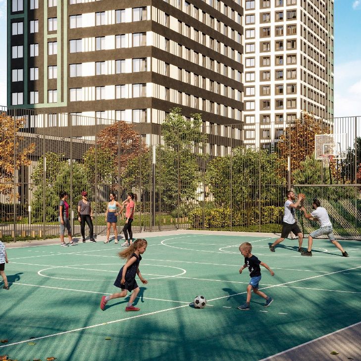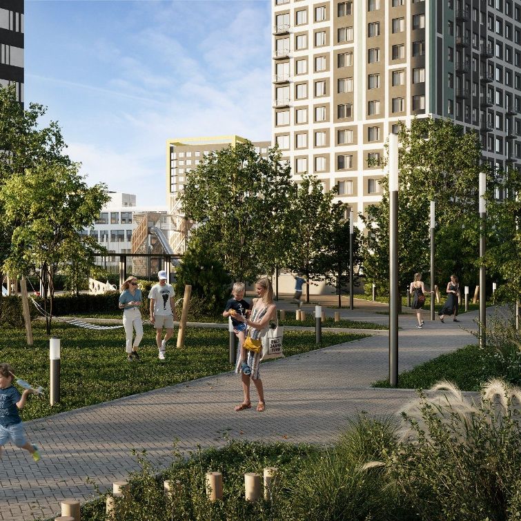 У домов комплекса территория в формате «без машин» с игровыми площадками для детей всех возрастов, также площадками для отдыха и занятий спортом. В ЖК появится подземный паркинг, также предусмотрены открытые общественные стоянки.