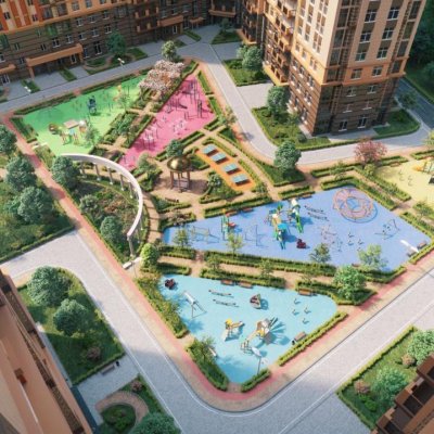 На территории организуются комфортные зоны отдыха в живописных уголках дворов, есть велосипедные дорожки, спортивные площадки, игровые городки для детей разных возрастов, пешеходные зоны. Изюминка жилого комплекса – природное озеро с благоустроенной набережной.