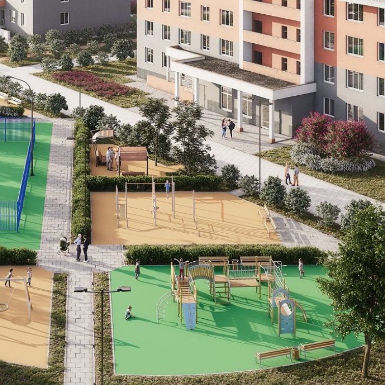 Уровень благоустройства, отражающий все последние тенденции в ландшафтном дизайне и оформлении малыми архитектурными формами. Игровые зоны для малышей, дошкольников и детей постарше. Зона отдыха для взрослых с уютными беседками, столом для игры в шахматы или настолки, скамейками для отдыха в окружении зелени. Для любителей активного образа жизни на территории предусмотрена многофункциональная зона воркаута и универсальная спортивная площадка с резиновым покрытием.