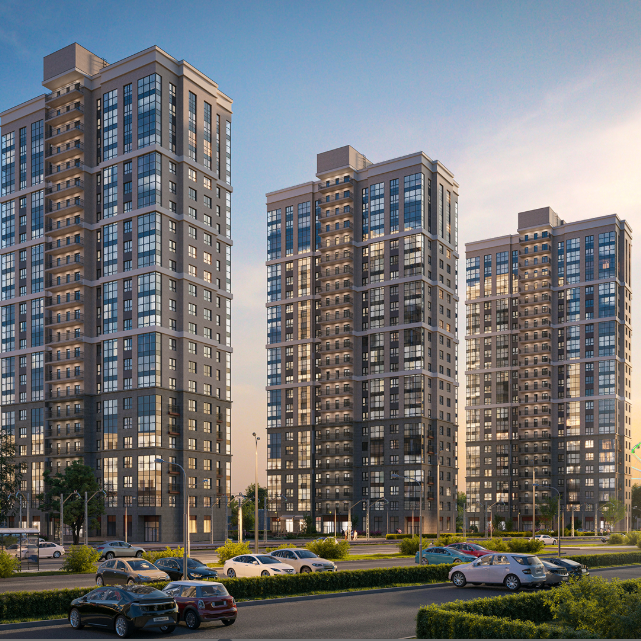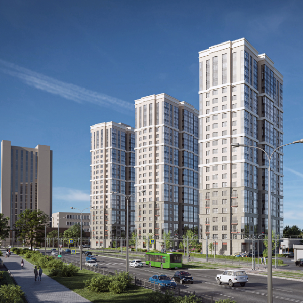 «Трилогия» — три элегантные башни, возвышающиеся над ландшафтом. Архитекторы выбрали лаконичную эстетику: классические фасады в бежевых тонах, без излишней вычурности, чтобы гармонично вписаться в окружающую среду. Использование неполированного керамогранита придаёт комплексу респектабельный вид, подчеркивает конструктивную выразительность и гарантирует долговечность — внешний облик сохранится на десятилетия.