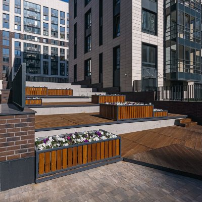 Преимущества новостройки – входы в подъезды на уровне земли, большие окна, видовые квартиры с террасами, ванные комнаты с окнами, два или три санузла в большинстве квартир, гардеробные, дизайнерская отделка мест общего пользования, индивидуальные кладовые, колясочные, подземные паркинги для нескольких тысяч автомобилей, свободная от движения автомобилей придомовая территория, система контроля доступа, закрытые для посторонних уютные дворы с зонами воркаута, велодорожками и велопарковками, детскими площадками, беседками, амфитеатром, теневыми навесами, прогулочными аллеями с разноуровневым освещением, пешеходным бульваром, газонами с дикими травами и злаковыми культурами, ландшафтным озеленением и бесплатным Wi-Fi.