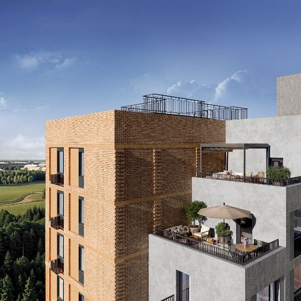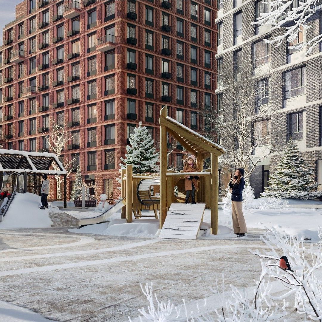 Каждая секция построена в форме замкнутого квадрата с закрытым двором в центре, чтобы оградить прогулочные зоны от оживлённого уличного движения. Цветовая гамма фасадов органично вписывается в окружающую застройку, при этом выгодно выделяя комплекс на фоне местных пейзажей. На верхних этажах домов запланированы видовые квартиры — жители смогут любоваться яркими зелёными панорамами, наслаждаться свежим воздухом и звуками природы. Прогулочные пешеходные бульвары внутри жилого комплекса связывают дома в единую экосистему. Туда же вынесены шумные игровые площадки и большой спортивный кластер с полем для мини-футбола, столами для настольного тенниса и воркаут-площадкой с тренажёрами. На территории домов первой очереди располагается «соседский центр» — площадка, где жители могут общаться, учиться, отмечать праздники, отдыхать или проводить творческие мастер-классы, поддерживая атмосферу добрососедства. Все входы расположены на уровне земли, чтобы среда была действительно безбарьерной и комфортной для всех жителей. А ещё зайти в парадную можно по биометрии: это удобно, когда заняты руки.