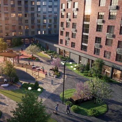Благоустройство прилегающей территории включает в себя организацию детской и спортивной площадки, зон отдыха и озеленение. Предусмотрены открытые гостевые парковки. Первые этажи отведены под коммерческие помещения. В шаговой доступности находятся детские сады, школы, медицинские учреждения, аптеки, продовольственные магазины и парки.