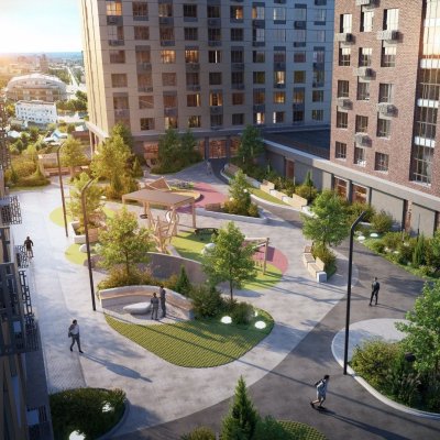 Это будет настоящий зеленый оазис в центре города, скрытый от посторонних и наполняющий энергией его жителей. «Дзен-двор» состоит из двух уровней: на верхнем - игровая площадка с развивающими элементами, беседка для летних ланчей и работы, лежаки для солнечных ванн, зеленая зона для медитаций и качели для детей и взрослых. В проекте предусмотрены светящиеся LED-качели для атмосферных вечером и красивых фото. Нижний уровень двора - это зона уличного спорта. Тут разместятся столы для пинг-понга, небольшой скалодром для малышей .