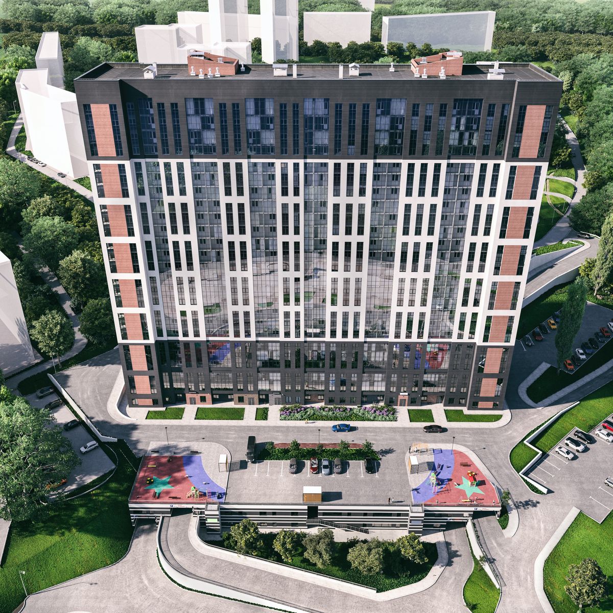 В жилом комплексе представлен большой выбор квартир: студии, 1к, 2к, 3к и 4-х комнатные квартиры, квартиры евроформата с кухнями-гостиными до 25м2, квартиры с мастер-спальнями и гардеробными, квартиры с высотой потолков до 4м! Все квартиры отличаются продуманными планировками с оптимальными площадями: от 27 до 95,3 м2. Удобные входные группы в уровень с землей. Помещения для хранения колясок. Индивидуальные кладовые. Коммерческие помещения на первом этаже. Проектом предусмотрено комплексное благоустройство территории жилого комплекса. Будет организован большой прогулочный бульвар. Уютные зоны отдыха со скамейками. Игровые площадки для детей. Универсальная спортивная площадка для активного отдыха.