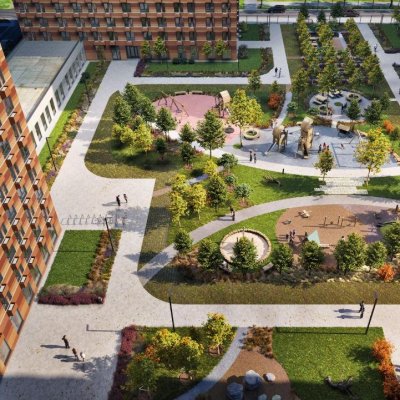 Проект включает семь 33-этажных башен, благоустроенную территорию с дворами-парками и пешеходным бульваром, подземный паркинг, а также собственные детский сад и школу. Для любителей активного отдыха рядом с домами появятся площадки для командных видов спорта.