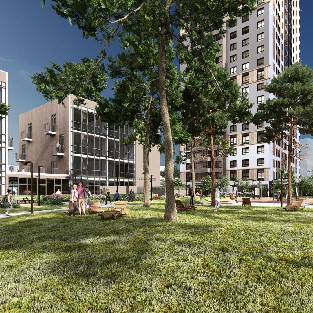 - отдельно стоящие офисные здания, в том числе с эксплуатируемыми кровлями, по периметру и в центре микрорайона.