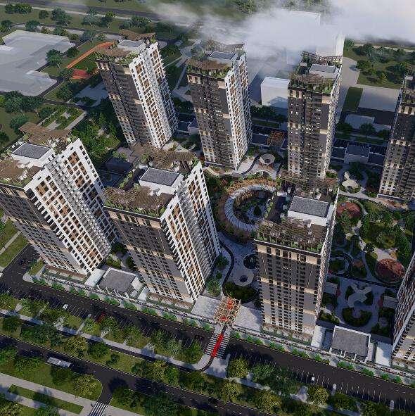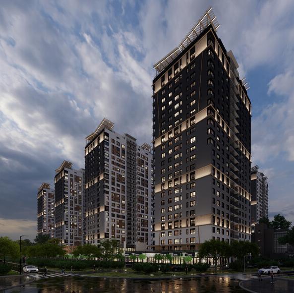- в двух очередях строительства - 9 монолитно-кирпичных домов высотой 23 этажа с эксплуатируемыми кровлями;