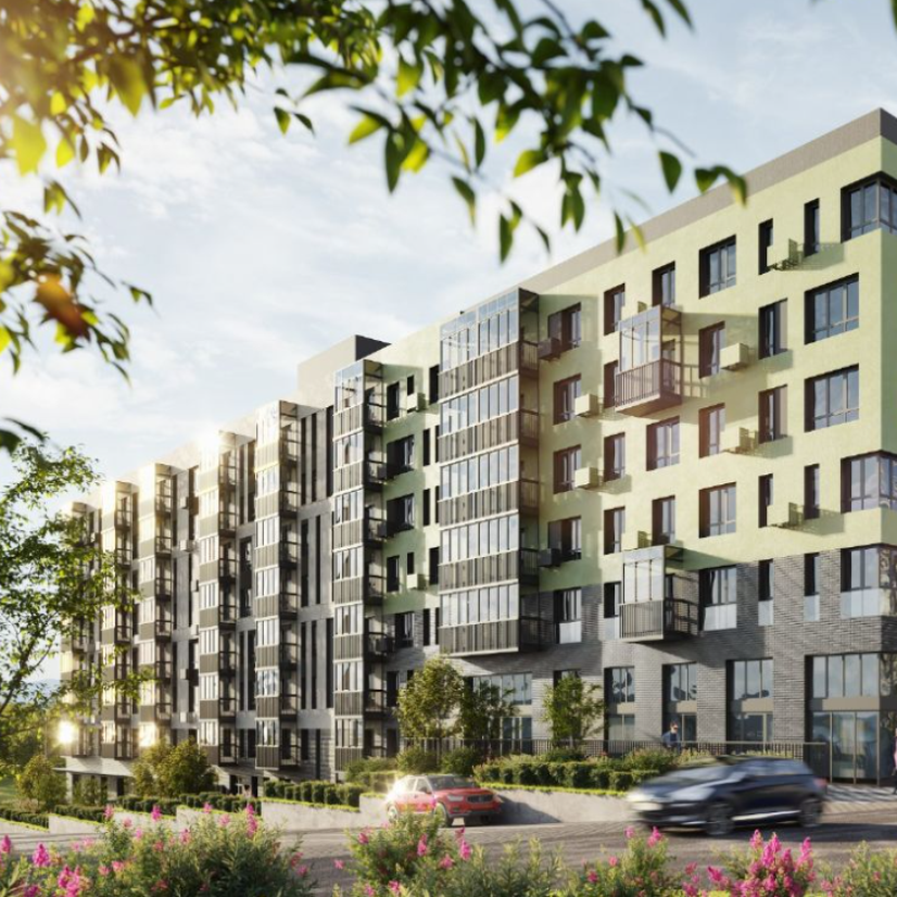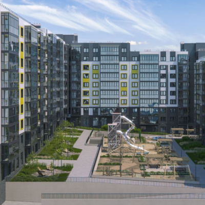 На первых этажах — коммерция: магазины, аптеки, салоны, пункты выдачи. В планах — 3 детских сада и 3 школы, первые сдадут в 2028.