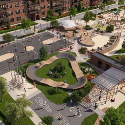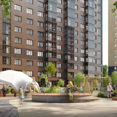 - Благоустройство: круглосуточное видеонаблюдение, детские и спортивные площадки, зоны отдыха, многоуровневое освещение, ландшафтное озеленение