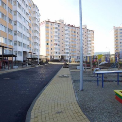 На прилегающей к домам территории в МКР "Горгиппия" размещены детские игровые и спортивные площадки, зоны для отдыха и досуга, специализированные парковочные места для транспортных средств.